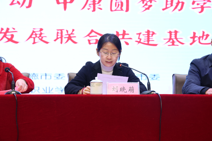 2023年11月16日,農工黨京津冀協(xié)同發(fā)展聯(lián)合共建基地揭牌儀式暨“中康圓夢助學金”捐贈活動在承德護理職業(yè)學院舉行。農工黨北京市委會專職副主委江欣、農工黨河北省委會專職副主委兼秘書長劉曉萌、中共承德市委副書記蔣文冬,承德市政協(xié)副主席、農工黨市委會主委郭靖濤出席活動并為“京津冀協(xié)同發(fā)展聯(lián)合共建基地”揭牌。農工黨北京市委會社會服務委員會主任、北京中康時代醫(yī)院投資集團董事長唐細忠,承德護理職業(yè)學院黨委書記高中衛(wèi)出席活動。